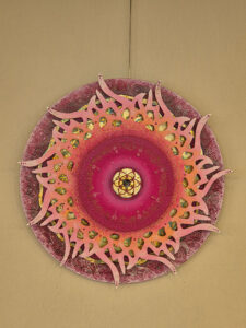 In 2016 begon ik informatie in beelden, geometrische patronen en klanken te ontvangen en ging ik deze schilderen. Hieruit ontstonden ook afgestemde zielen-tekeningen en gidsen-tekeningen die ik in opdracht maakte voor mensen. Rond dezelfde tijd begon ik met het geven van ‘readingen’ met automatisch schrift. De daaropvolgende verdiepende ervaringen met natuurwezens, dieren en ‘extra terrestrials’ luidde een hele nieuwe fase van mijn leven in, die zich tot op heden steeds meer aan het ontvouwen is.